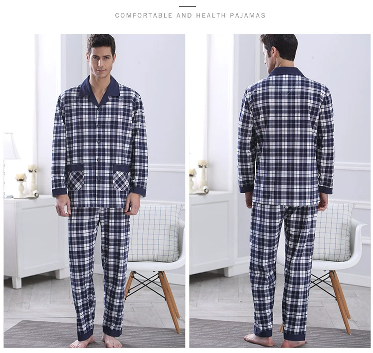 Bộ đồ ngủ cho nam trung niên cotton dài tay cotton nam mùa xuân và mùa thu đặc biệt cộng với phân bón XL phục vụ nhà phù hợp với bông