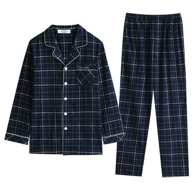 Bộ đồ ngủ cotton mới tiêu chuẩn của Mỹ cho nam thu đông có thể mặc đồ kẻ sọc đơn giản phục vụ tại nhà