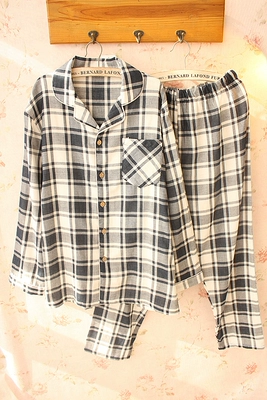 の Bộ đồ ngủ của những người yêu thích đồ ngủ bằng sợi cotton mỏng phần nam và nữ cotton đôi gạc kẻ sọc phục vụ nhà