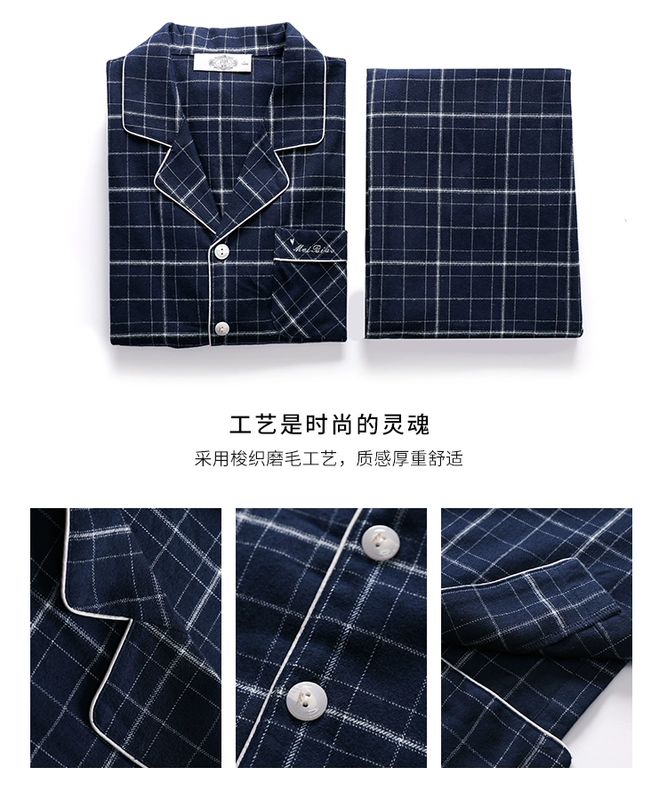Bộ đồ ngủ dài tay mùa xuân và mùa thu mới của Mỹ Bộ đồ ngủ đôi nam nữ có thể mặc đồ cotton kẻ sọc