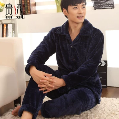 Bộ đồ ngủ nam bằng lông cừu san hô mùa đông chải lông mùa đông cho ông già trung niên cộng với phân bón XL 200 kg