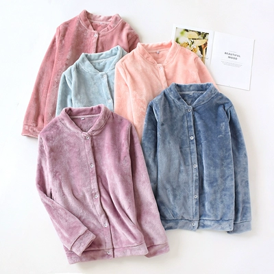 Bộ đồ ngủ nam và nữ đơn sắc mùa thu và mùa đông san hô nhung dày áo dài tay ấm áp dịch vụ nhà flannel - Pyjama