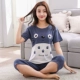Bộ đồ ngủ nữ mùa hè cotton tay ngắn cắt quần tây mùa hè phù hợp với phụ nữ có thể mặc đồ mỏng dễ thương tại nhà của Hàn Quốc