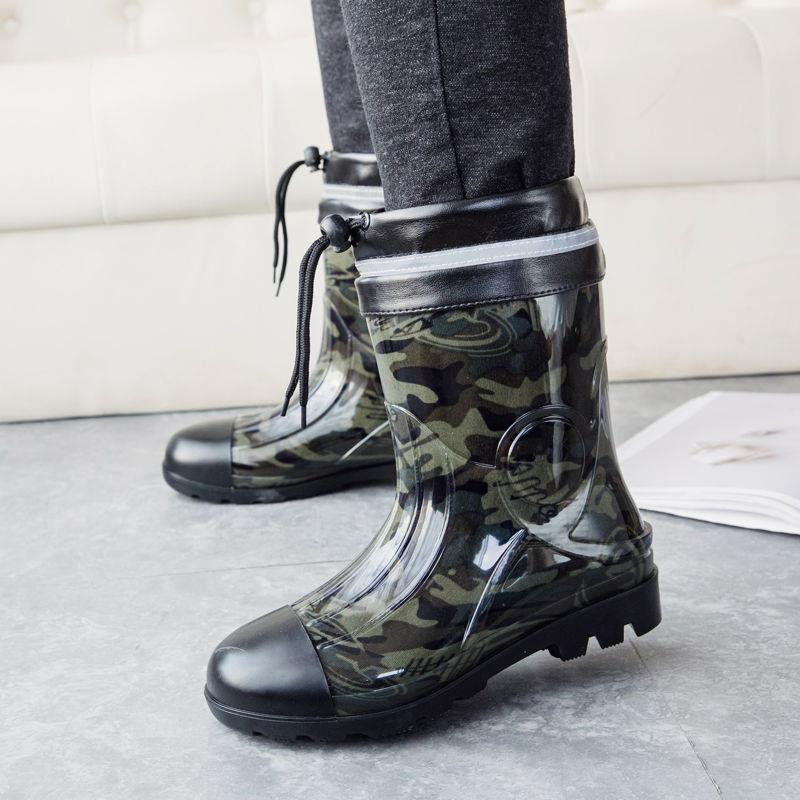 Bốn mùa xuân và mùa thu giày nam mưa giầy cao su nam ngụy trang Giày đi mưa Martin trong ống chống thấm nước giày chống trượt mùa hè giày rửa xe - Rainshoes