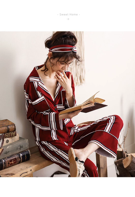 Cặp đôi đồ ngủ cotton dài tay nữ mùa xuân và mùa thu đông Hàn Quốc áo len sọc cotton cotton nam phục vụ nhà