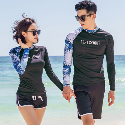 Cặp vợ chồng Hàn Quốc áo tắm dài tay chống nắng lướt sóng tuần trăng mật mùa xuân nóng bỏng bãi biển boxer áo tắm bảo thủ che bụng đã mỏng - Vài đồ bơi