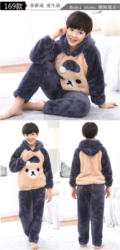 Cậu bé trong bộ đồ ngủ bé trai lớn 7-8-12-13 bộ đồ flannel mùa đông Bộ đồ ngủ bé trai 14-15 tuổi học sinh trung học cơ sở