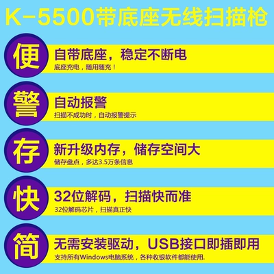 Chuanqi K-5500 mã vạch laser một chiều không dây súng máy siêu thị kho siêu tốc sạc cơ sở súng quét mã - Thiết bị mua / quét mã vạch