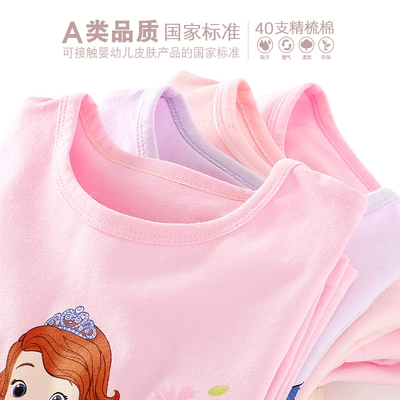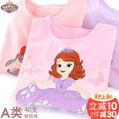 Cô gái Disney chạm đáy áo sơ mi cotton dài tay cổ tròn cho bé mùa thu quần áo trẻ em trắng mỏng kiểu áo thun - Áo thun