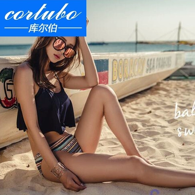 CORTUBO đen xù ngực nhỏ gợi cảm retro sọc thép tấm thấp eo bikini cô gái tắm nước nóng mùa xuân - Bikinis