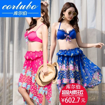 CORTUBO mới mặc bikini ba mảnh bằng thép tấm tụ tập váy lớn che bụng thon dài thời trang xuân hè - Bikinis