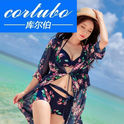 CORTUBO2018 chia áo tắm nữ kiểu váy chéo bikini ngực nhỏ thu thập ba mảnh bảo thủ Slim phẳng - Bikinis