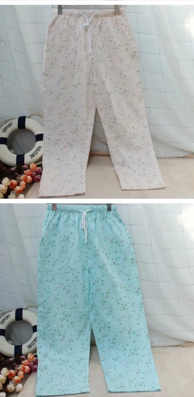 Cotton đôi gạc nhà quần nam và nữ cặp vợ chồng mùa xuân và mùa thu đồ ngủ mùa hè mỏng điều hòa không khí quần dâu