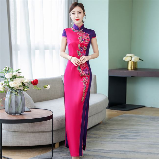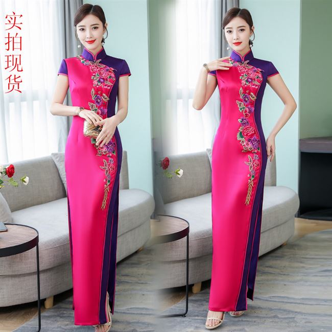 Đầm nữ dài thanh lịch, váy sườn xám thanh lịch cải tiến sườn xám nữ catwalk sườn xám 2019 kiểu mới Trung Quốc - Sản phẩm HOT