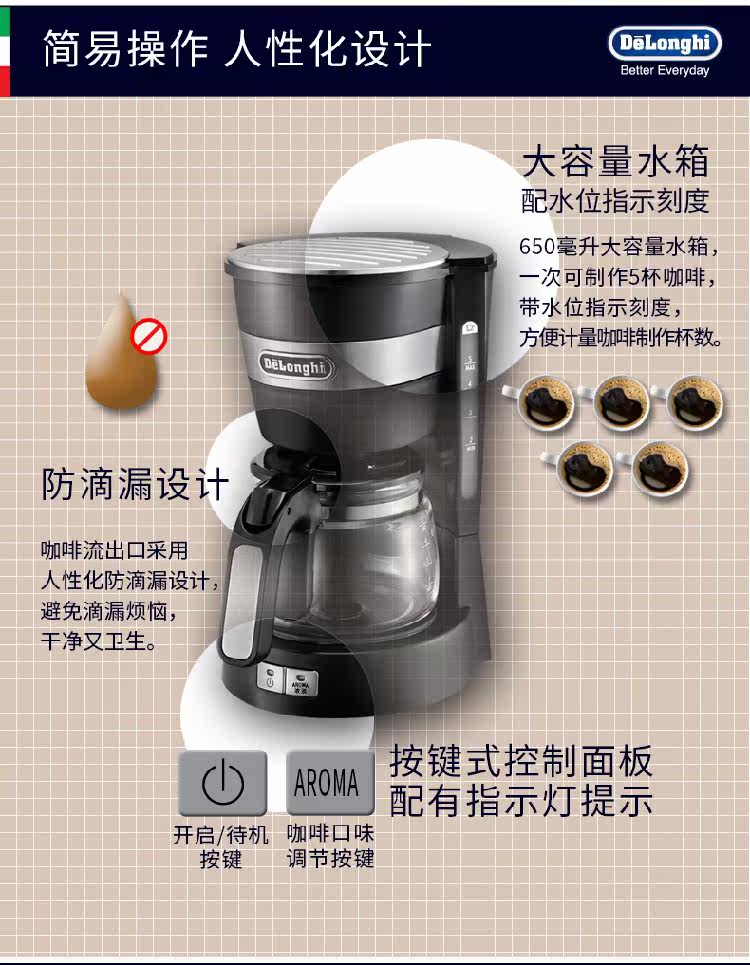 Delonghi DeLong ICM14011 Máy pha cà phê nhỏ giọt công suất lớn - Máy pha cà phê