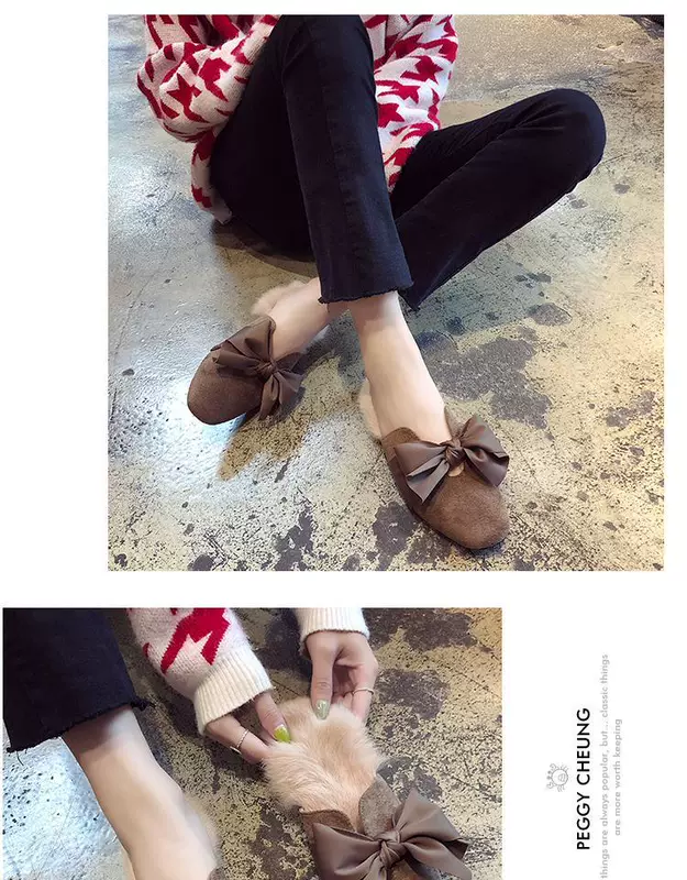 Dép lê đỏ nữ mùa thu 2018 phiên bản Hàn Quốc mới của nhà ga châu Âu hoang dã kéo nửa đầu thời trang lông thú Muller