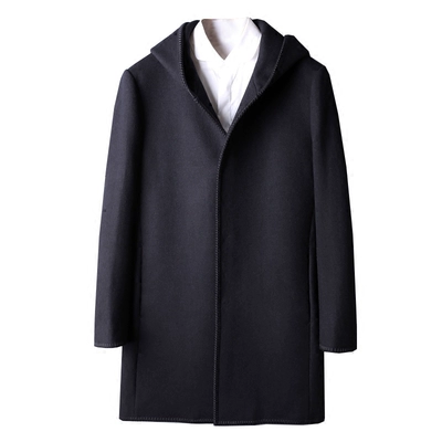 Đẹp trai đơn ngực mùa đông dày ấm áp hai mặt len ​​mỏng trùm đầu áo khoác len dài nam - Áo len