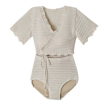Dệt kim thanh lịch Openwork Ren cao Eo Bao bụng Belly Slim Spa Spa Góc phẳng Chia áo tắm Phụ nữ - Bộ đồ bơi hai mảnh