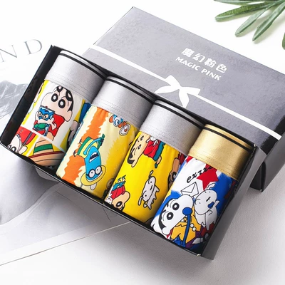 Đồ lót nam 4 băng lụa không có dấu vết cotton mùa hè 裆 phim hoạt hình thanh niên siêu mỏng thể thao thoáng khí quần eo