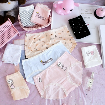 Đồ lót nữ cotton nữ cotton mid-cotton cotton ren gợi cảm liền mạch kiểu cô gái