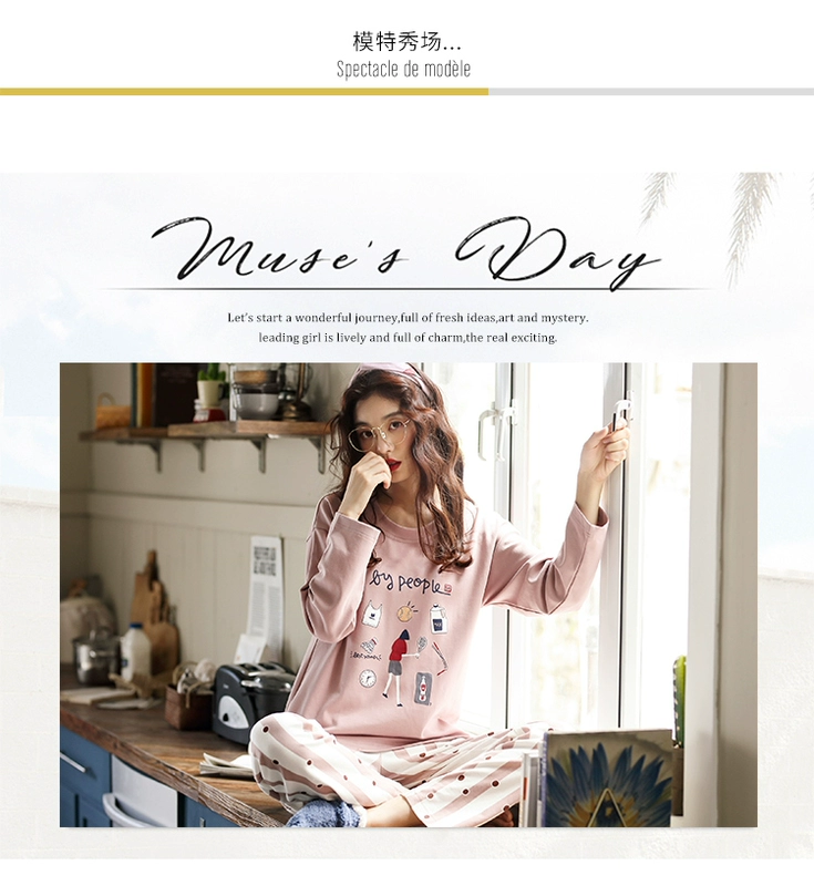 Đồ ngủ đặc biệt hàng ngày ít phụ nữ mùa xuân và mùa thu cotton dài tay ngọt ngào dễ thương phiên bản Hàn Quốc của bộ phim hoạt hình lỏng lẻo