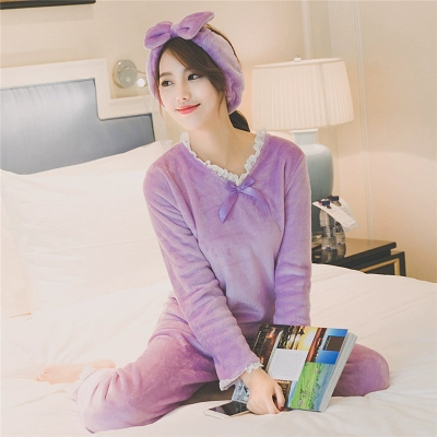 Đồ ngủ mùa thu và mùa đông của phụ nữ thành thị Hàn Quốc ren nhung nhung mùa thu tay áo dài mỏng dễ thương phù hợp với vẻ đẹp