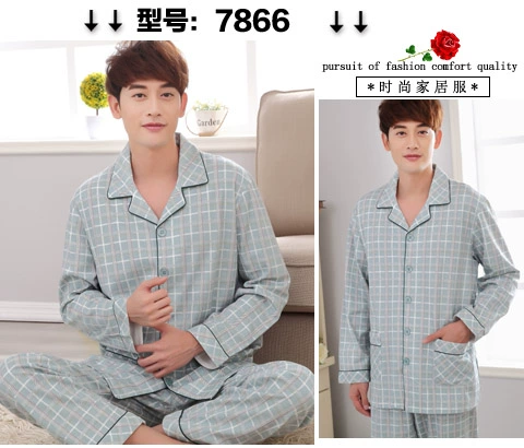 Đồ ngủ nam mùa xuân và mùa thu mùa đông dài tay cotton mùa hè trung niên mùa thu trung niên người cao tuổi mùa thu cha dịch vụ nhà