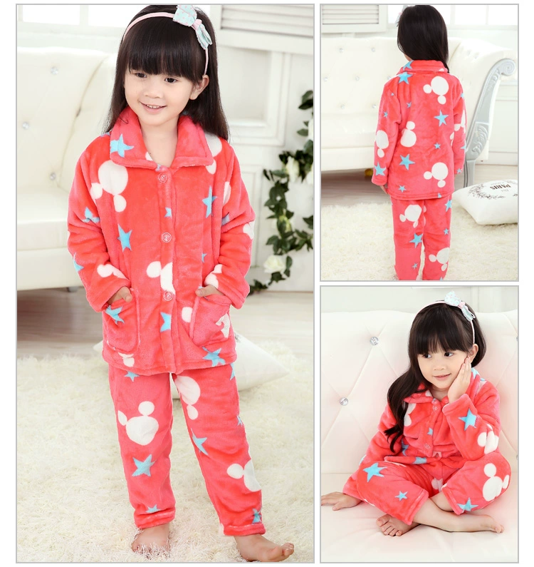 Đồ ngủ nhung san hô cho nam và nữ Bộ đồ ngủ trẻ em mùa xuân và mùa thu kích thước lớn phục vụ nhà trai áo khoác bé trai lớn phù hợp với bé gái