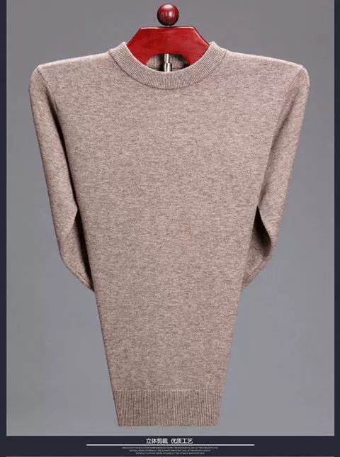 Được sản xuất từ ​​áo len cashmere Ordos nam trung niên cổ tròn áo len dày mùa đông trùm đầu áo len ấm áp