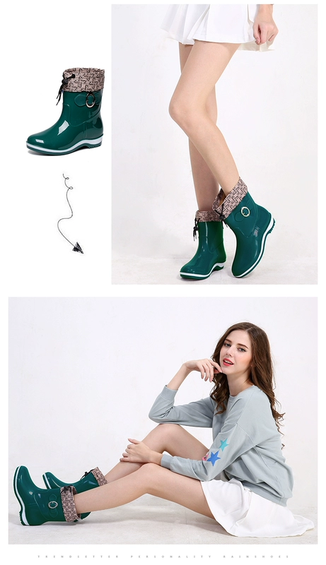 Giày đi mưa nữ mẫu thời trang mang giày ống ngắn cho người lớn