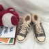 Giày Nhật Bản màu hồng ngọt ngào sang trọng mùa thu và mùa đông cộng với đôi giày vải nhung dày ấm áp đôi giày nữ sinh