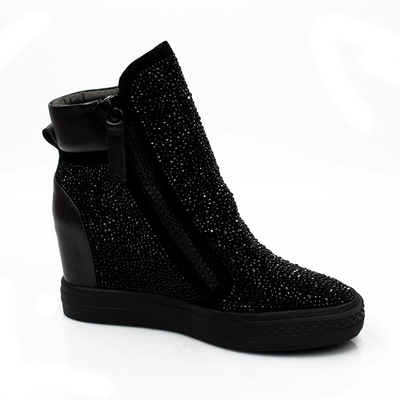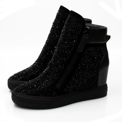 Giày nữ tăng 2017 mùa thu và mùa đông đôi dây kéo cao gót thông thường giày cao gót bằng da rhinestone cao giúp cộng với giày cashmere - Giày cao gót