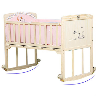 Giường gia đình cho bé, chăn nhỏ, bánh xe nối cố định, giường gỗ, bé mở rộng, giường trái và phải - Giường trẻ em / giường em bé / Ghế ăn