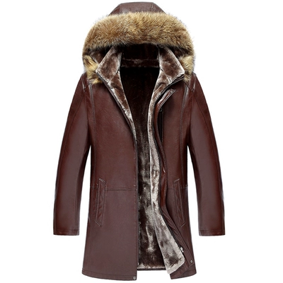 Hàng ngày đặc biệt da nam lông một lông nam áo gió kích thước lớn áo trùm đầu áo dài kích thước lớn - Quần áo lông thú