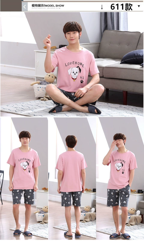 Học sinh trung học cơ sở đồ ngủ bé trai mỏng mùa hè cotton ngắn tay thiếu niên 15 trẻ lớn 12-18 tuổi 13 dịch vụ tại nhà