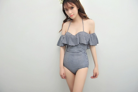 Houndstooth trong bộ nhớ - Tấm thép bikini dính liền Hàn Quốc tập hợp áo tắm giảm béo
