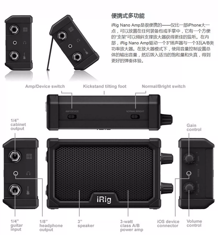 IK iRig Nano Amp Mini Guitar điện cầm tay Âm thanh 3W Power Ghi hiệu ứng mềm - Loa loa