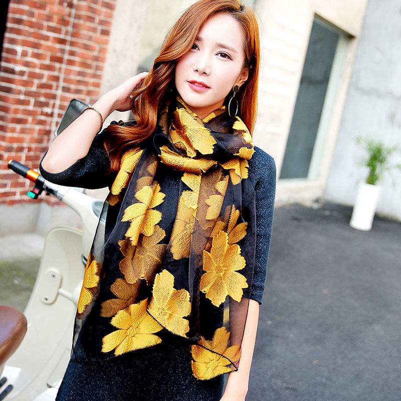 Khăn choàng lụa sáu lá mới khăn choàng khăn choàng dài nữ sử dụng kép mùa xuân và mùa hè mùa hè hoang dã khăn choàng điều hòa không khí Hàn Quốc - Khăn quàng cổ / khăn quàng cổ