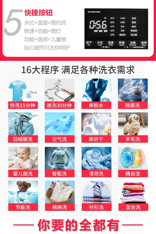 Little Swan 10 kg KG tự động giặt và sấy khô tích hợp máy giặt trống chuyển đổi tần số TD100V81WDG - May giặt