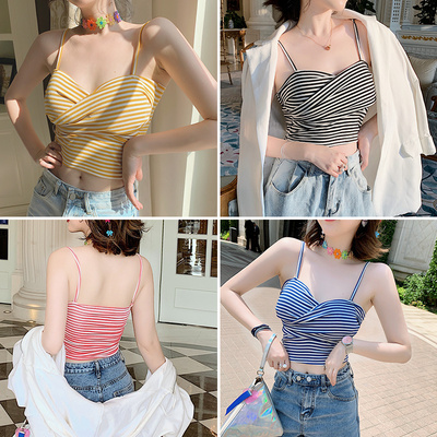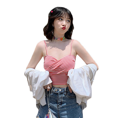 Màu đỏ ròng với dây đeo lưng thon gọn hàng đầu 2019 hè mới phiên bản Hàn Quốc là quần áo vest nữ sọc mỏng hoang dã - Áo ba lỗ