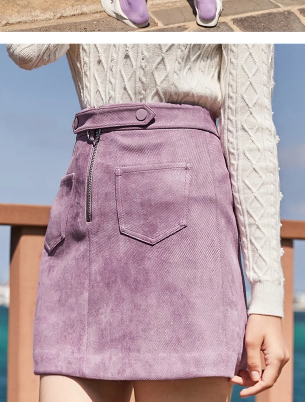 Màu xanh tình yêu 2018 mùa đông mới Hồng Kông hương vị váy tím nữ cao eo túi hông váy thun eo - Váy