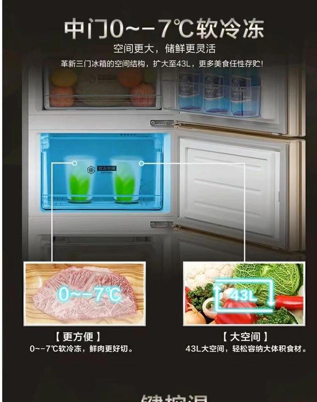 Midea / beauty BCD-215WTM (E) làm lạnh bằng không khí, tủ lạnh ba cửa nhỏ, cửa đôi tiết kiệm năng lượng - Tủ lạnh
