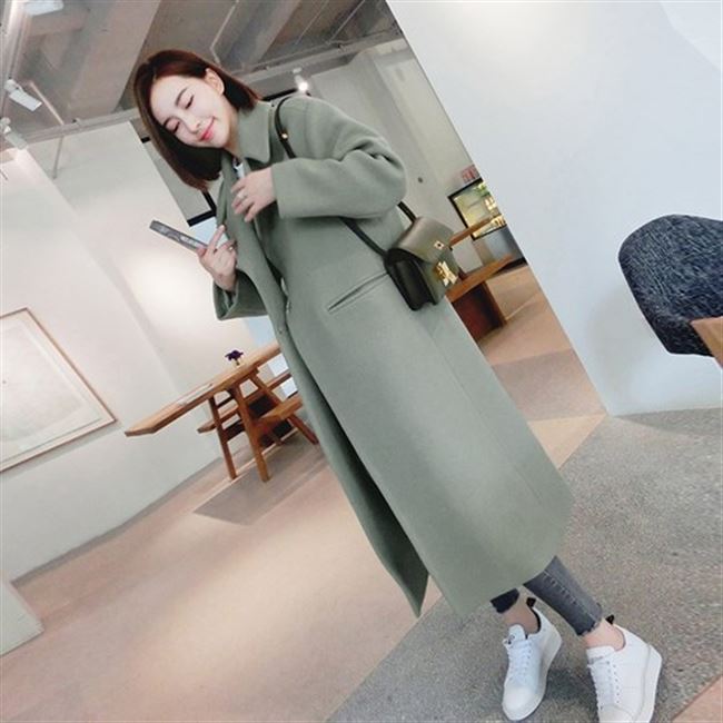 Mùa đông 2019 kích thước lớn của phụ nữ dài phần dày áo len ấm áp áo khoác len áo gió giản dị học mới - Áo khoác dài