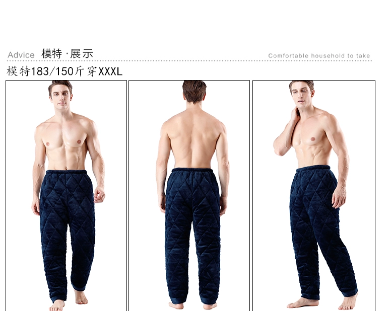 Mùa đông ba lớp dày san hô lông cừu bộ đồ ngủ nam flannel kích thước lớn quần ngủ bình thường ấm nhà quần màu rắn