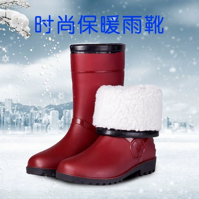 Mùa đông cộng với ống nhung ấm đôi giày mưa thời trang nữ đi mưa cộng với giày trượt bông giày không thấm nước giày nhẹ nước