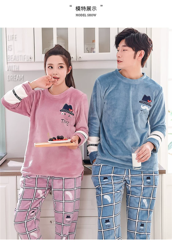 Mùa đông flannel những người yêu thích đồ ngủ dài tay Hàn Quốc mùa đông nam và nữ ngọt ngào dễ thương dày lông cừu san hô