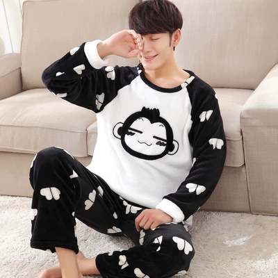 Mùa đông học sinh trung học cơ sở thanh niên dày phim hoạt hình ấm áp đồ ngủ nam thanh niên flannel san hô lông cừu dịch vụ nhà