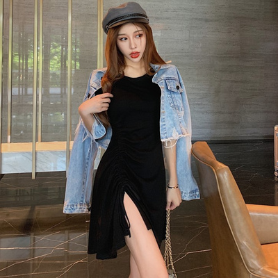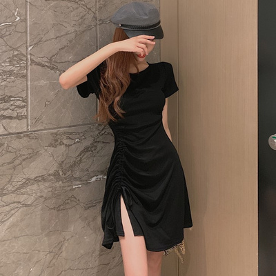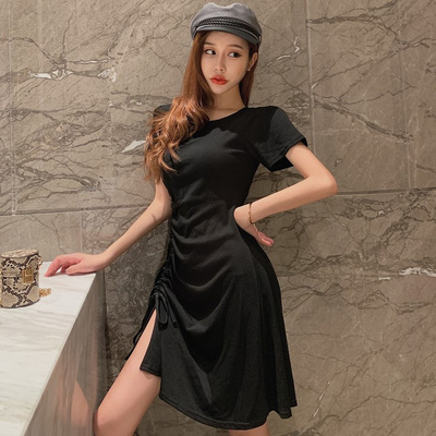 Mùa hè 2019 mới khí chất váy ngắn Váy ngắn tay ngắn Váy xếp li xếp nếp eo Một chiếc váy từ nữ - A-Line Váy