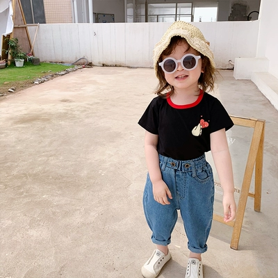 Mùa hè 2019 quần áo trẻ em mới trẻ em hoang dã chạm đáy áo sơ mi nam và nữ phim hoạt hình chữ cái áo thun tay ngắn thủy triều 5180 - Áo thun