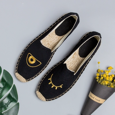 Mùa hè đay vải ngư dân giày vải của phụ nữ may thêu giày lười lười miệng nông nhỏ giày trắng đầu tròn